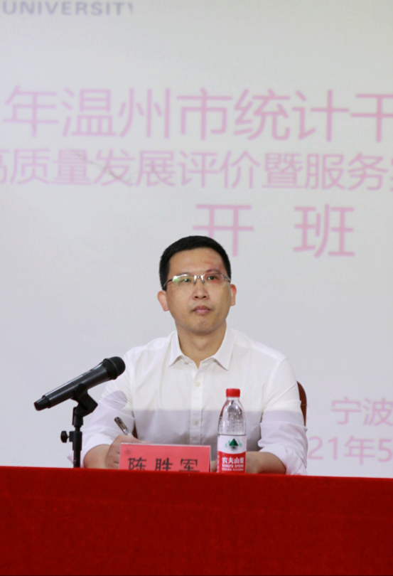 2021年5月19日上午,2021温州市统计干部综合素养提升班(高质量发展评价暨服务实体经济专题研修班)顺利开班。市统计局党组书记、局长陈胜军;宁波大学商学院院长金祥荣;宁波大学商学院副院长盛沛锋出席并讲话。