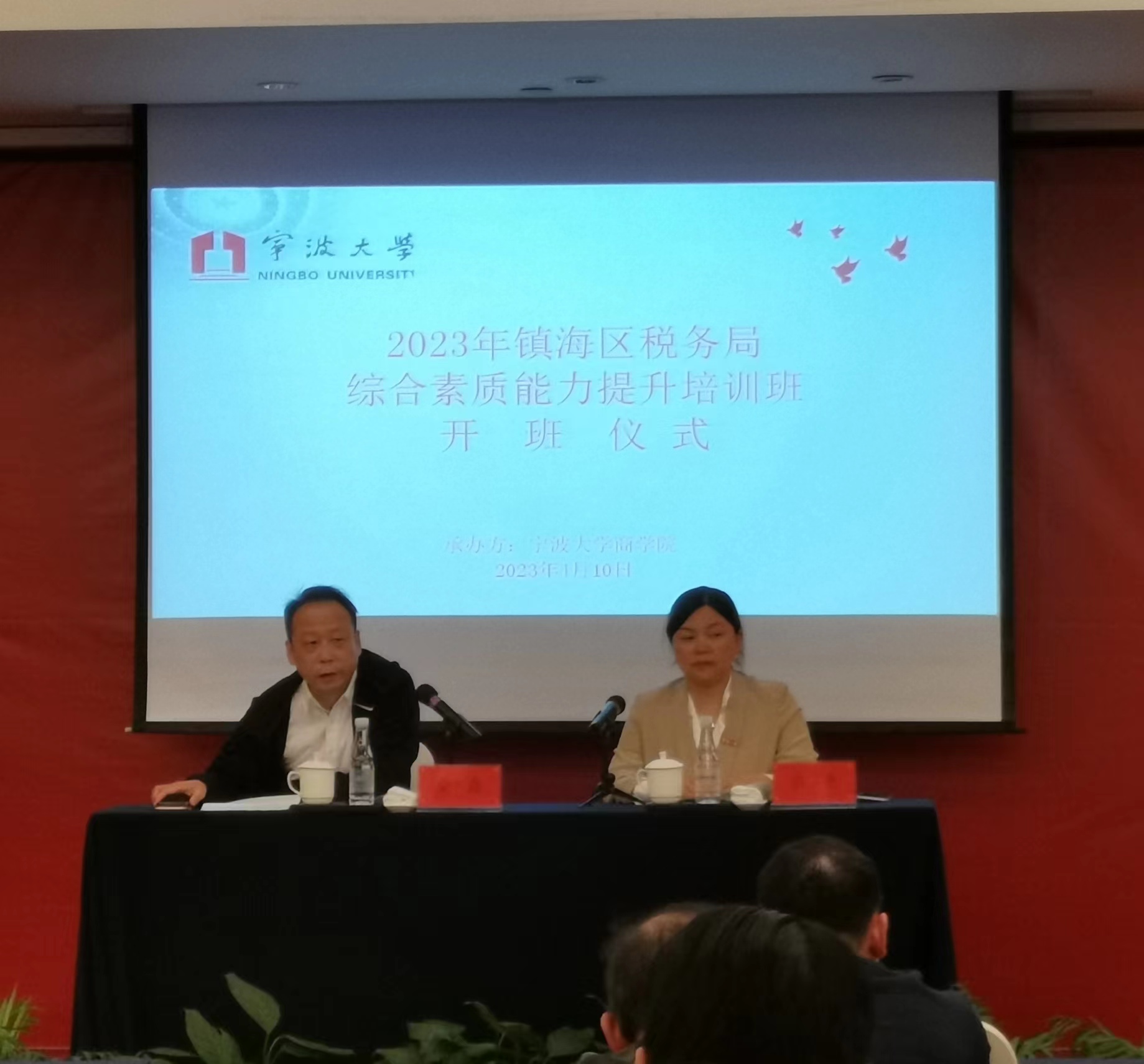 2023年4月10号下午,2023年镇海区税务局综合素质能力提升培训班(第一期)正式开班。商学院高培中心主任翁艳致欢迎词,国家税务总局宁波市镇海区税务局党委委员、副局长金鑫为全体学员进行了开班讲话。翁艳主任对镇海区税务局人员的到来表达了热烈的欢迎。金鑫副局长在开班讲话中对此次的学员培训的提出了具体的学习要求,希望各位学员认真学习,扩展自身视野,不断提高自身的综合素质。