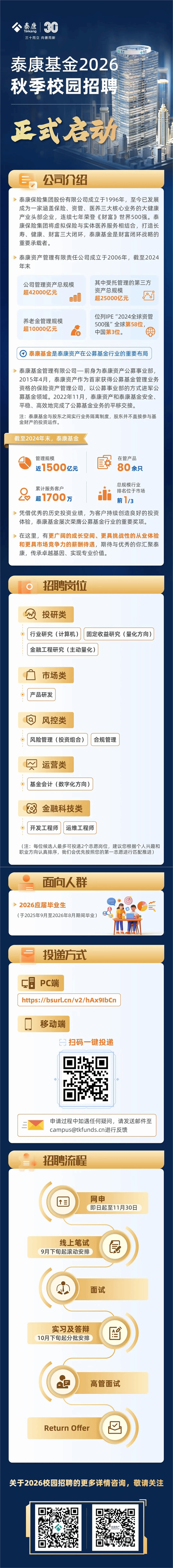 泰康基金校园招聘简章