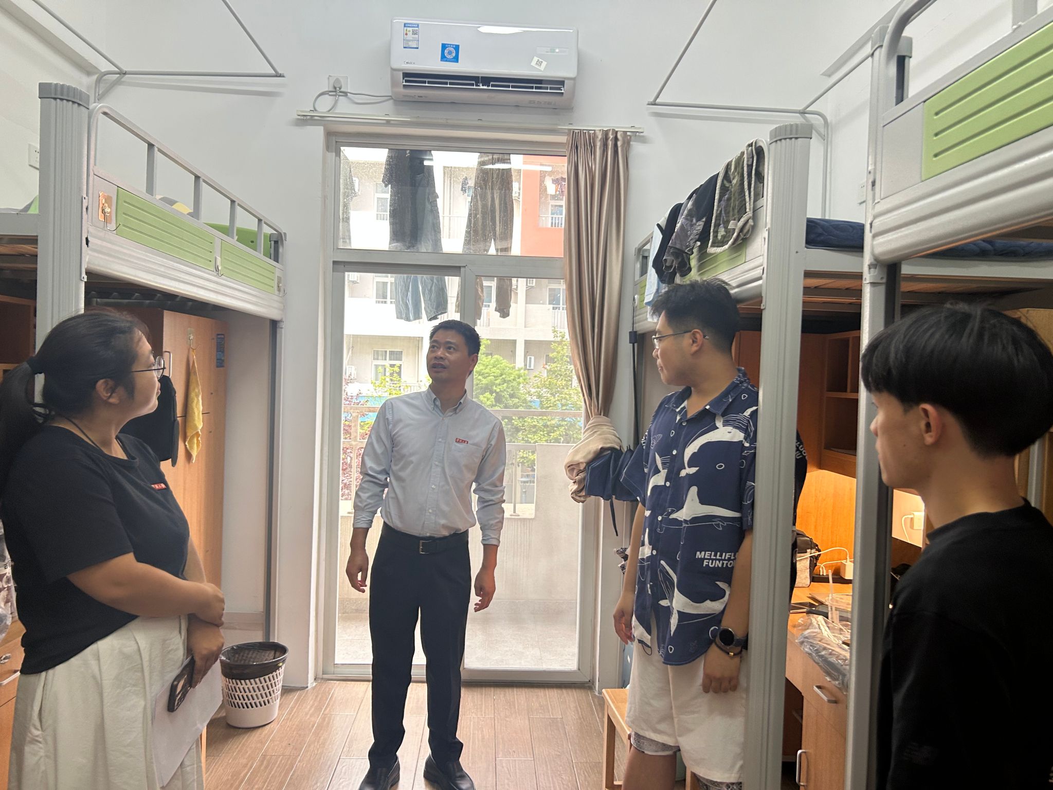 为全面了解研究生新生报到情况及入学适应状态,帮助新生们更快融入新集体与新环境,9月10日下午,国产av影片 党委副书记吴敏、带班辅导员朱文洁、宋辉等一行走进新生宿舍,开展走访慰问活动。