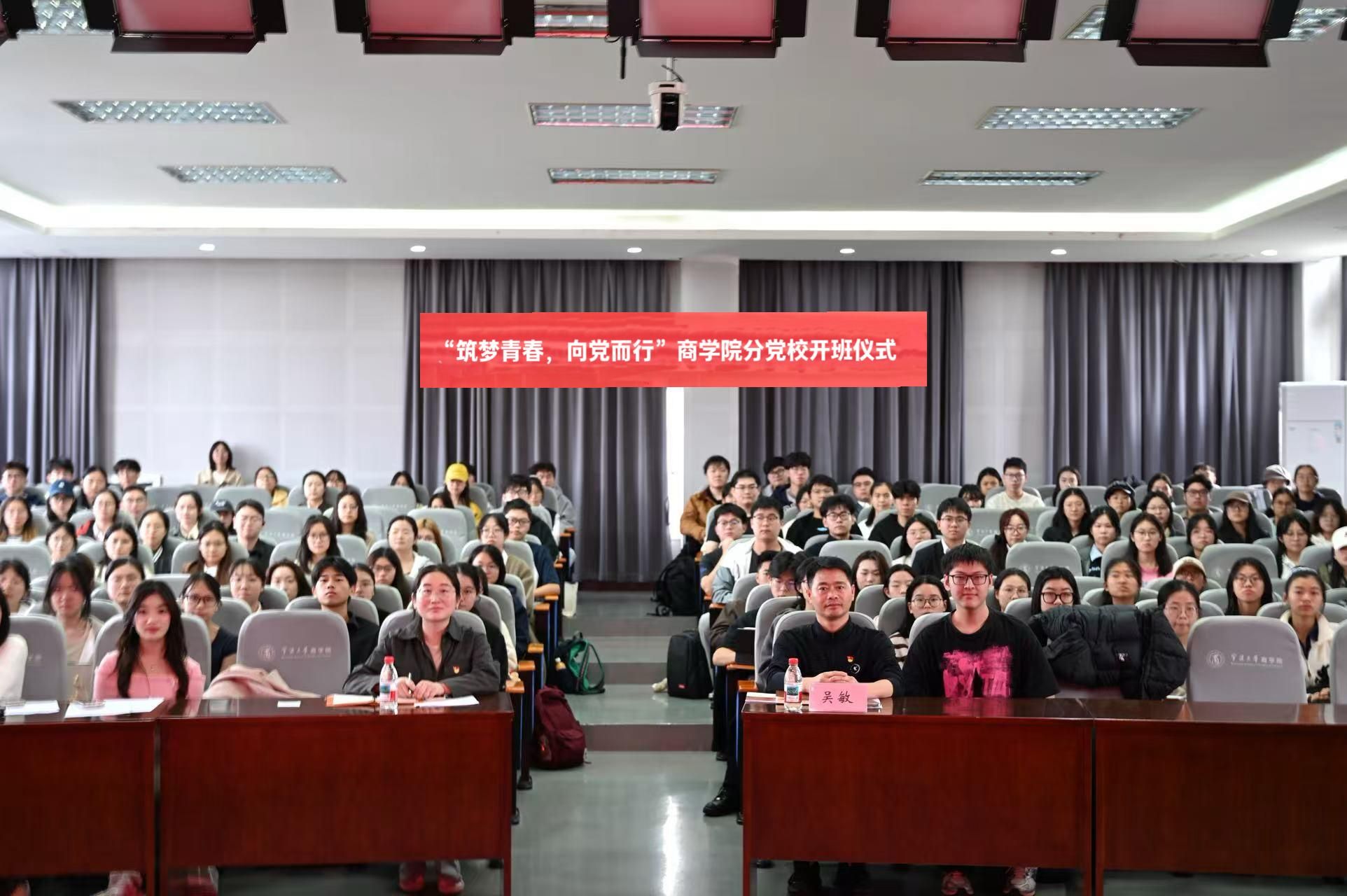 为加强青年学子的理想信念教育,今日下午(31日),商学院“筑梦青春,向党而行”2025年下半年分党校开班仪式在501报告厅顺利举行。商学院党委副书记、分党校副校长吴敏,党建辅导员、分党校班主任周双双及及全体分党校学员出席。