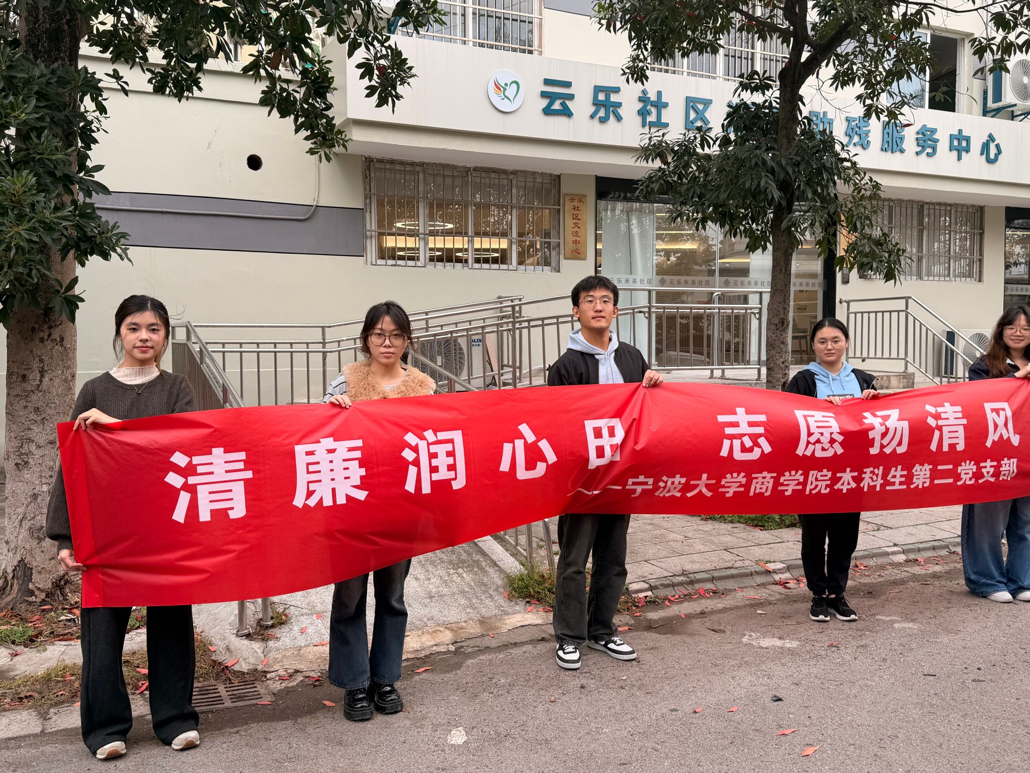 为深入推进新时代廉洁文化建设,将清廉文化融合学生党员日常学习生活,今日下午(10日),商学院本科生第二党支部联合海曙区白云街道云乐社区共同开展“清廉润心田 志愿扬清风”主题志愿服务活动。通过多元化载体播撒廉洁种子,筑牢学生党员清廉根基。