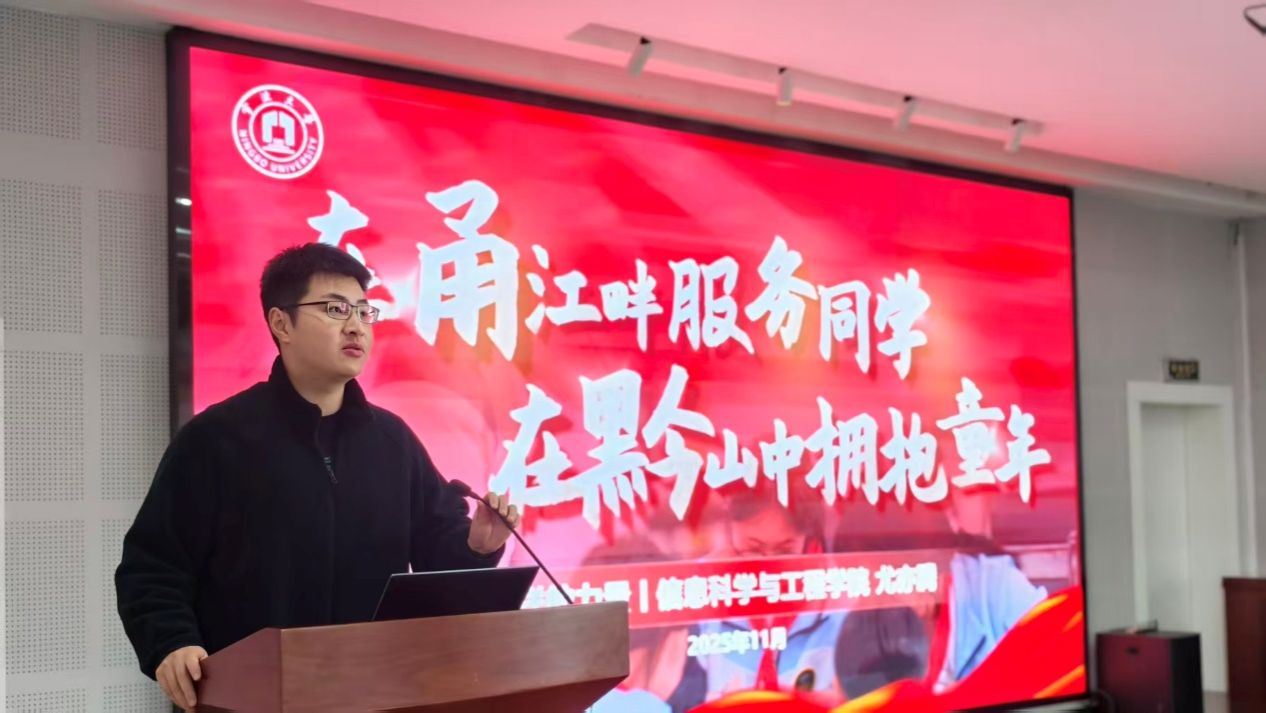 谈及作为支教团团长在贵州支教的经历时,尤亦腾以“在黔山中拥抱童年”为主题,按时间脉络讲述了从初到当地接过跨级带班重担,到主动融入当地生活、联动各方力量互帮互助的支教故事。质朴真诚的山区儿童、辛苦却意义非凡的扶贫实践,一个个真实动人的细节深深打动了每一位同学。他以自身经历让同学们直观感受成长的艰辛与不易,深刻理解当代大学生的责任与使命,呼吁大家在奉献自我、服务社会中成就灿烂青春。最终在全场同学们热烈的掌声中,此次讲座圆满结束。