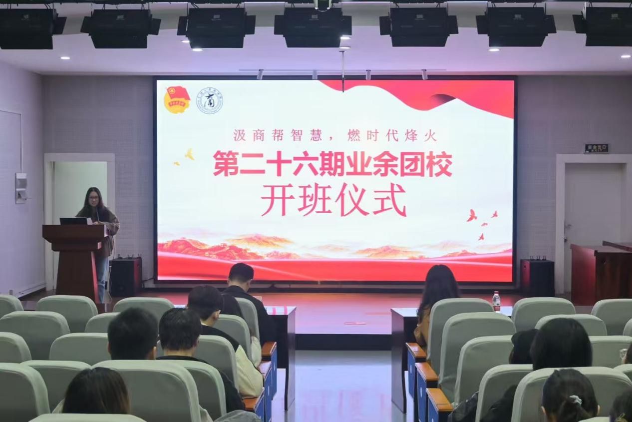 11月12日,商学院第二十六期业余团校开班仪式在501报告厅顺利举行。会议由商学院团委办公室干部施念主持,商学院党委副书记吴敏,团委副书记王晶晶以及133名学员参加活动。
