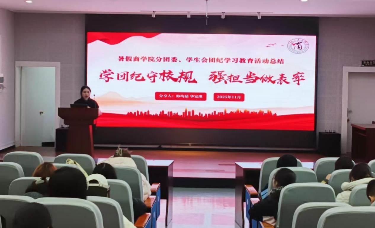 为深入贯彻落实团中央关于加强团员纪律教育的要求,切实强化团员政治引领、提升纪律意识。近日,商学院团委在501报告厅开展团纪学习总结大会。韩均茹、华安琪两名同学进行分享,大会由商学院团委副书记王晶晶主持,150余名业余团校学员参与。