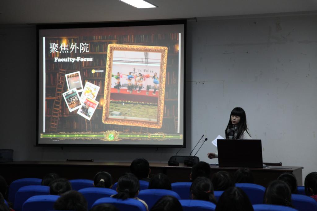 宣传工作水平,12月5日晚商院在学院414会议室召开学生新闻宣传培训交流会。外语学院团委书记邵磊、商院团委书记董璐、辅导员金耀出席了本次活动。商院三大组织学生干部、外语学院记者团、商院记者团参加了本次大会。商记团长韩军乐主持了本次培训交流会。 在培训会中,商院和外院记者团依次介绍了各自社团的基本情况,并就新闻宣传过程中的具体工作方法和心得进行了交流。接着,邵磊老师根据在外院这块工作的多年经验,围绕着“三体一位”、“实干巧干”、“多练文笔”等几个方面作了细致的讲述,并就研究投稿去向、完善考核方法、设立逐级上报制度等问题与商院学子进行了交流。最后,商院负责新闻宣传的金耀老师从新闻稿的标题、开头、结尾等具体层面与同学们分享了工作体会,并提出了相关的要求。 此次与兄弟学院的培训交流会,增进了两院之间关于新闻宣传工作的沟通和了解,有利于进一步提高国产av影片新闻