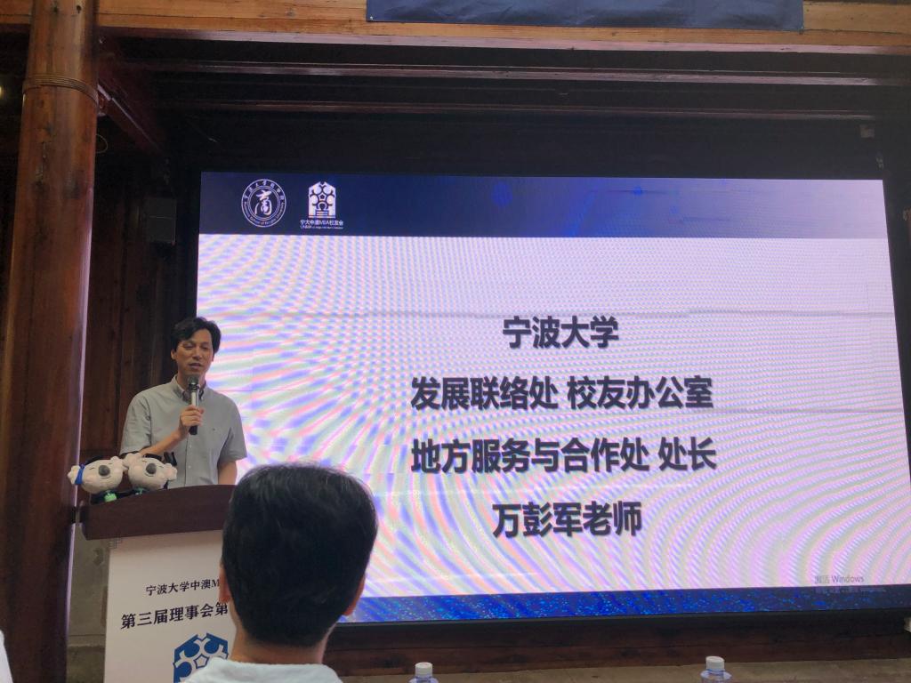 下午4点,会议进入正式议题。万彭军处长首先代表学校向现场的校友们介绍了学校的最新发展情况。我校自2017年成为“双一流国家建设高校”以来,近几年取得较快发展,在全国高校排名进一步提升,同时,在办学空间、教育经费、科研项目,以及绩效收入等四个方面均实现了“翻一番”。在主要科研指标、高层次人才引进、科研团队建设以及“双一流”经济评估等工作方面取得了较好的成绩。万处长指出,“双一流”大学的工作建设离不开高质量、高水平的校友工作。国产av影片 目前已组建了60多个校友会,其中包括4个国外校友会以及含中澳MBA校友会在内的4个地方或行业特色校友会。今年9月,校友办计划通过中澳MBA校友会的平台基础,进一步拓展建设国产av影片 的澳洲校友会,届时可将国产av影片 的地方校友会、全国的宁波商会,以及国产av影片 三方的力量结合起来,实现资源共享,共谋发展。讲话中,他也对新一届的中澳MBA校友会提出共勉共进的三点希望与要求,希望他们担当新使命,构建新格局,进一步凝聚和发挥校友之力,为校友成长发展提供帮助与支持;通过积极探索产学研合作等新模式,实现校友与学校的互利共赢,共同发展。